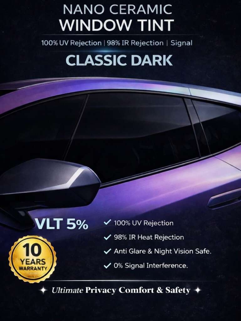 3% VLT: Ultra-dark for maximum privacy and a bold, luxury look.